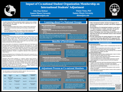 Purpose of Study: To explore factors that influence international students’ decision to join co-national student organizations and examine the impact these organizations have on their adjustment and sense of belonging.