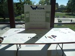 Color photo of the welcome poster and the activity table for the Suicide Prevention Week event. There is a poster on the table with markers available for students to write down names of loved ones lost to suicide.