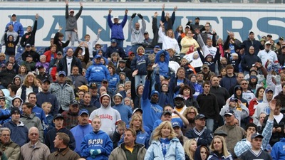 Candid, color photo of the crowd at the Eastern Illinois University and Eastern Kentucky University football game.