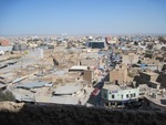 Color overview photo of Erbil, Iraq. This area of the city shows some buildings that are run down, while other buildings look newly constructed.