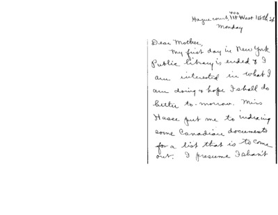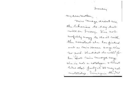 This collection features letters from Mary J. Booth to her mother Minerva, written from her time working at the New York Public Library.