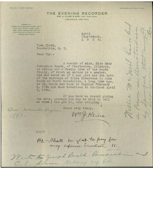This collection features letters between members of Mary J. Booth and her extended family, and also includes some newspaper clippings.